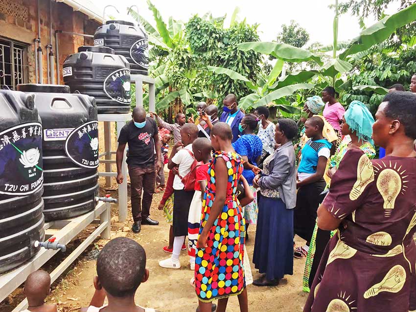 烏干達屬熱帶高原氣候,年雨量高,適合收集雨水來供應日常用水。選定穆科諾區,在學校、農場、村中心,分別建置三座雨水收集系統。建置過程中,也邀約當地青年一起協助,為自己家園盡一份力之外,也訓練青年學習看工程圖的技能。