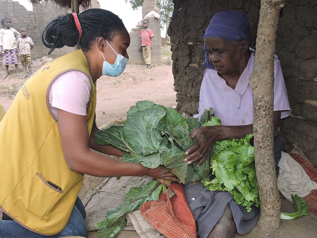 7月,志工們由哈拉雷出發,跨越九百公里距離來到濱加(Binga)發放大米和五穀粉,為營養注上強心針。這裡土地不易耕田,外人不易前往,封城導經濟更加蕭條,居民三餐不繼,不少孩童患有屬惡性營養不良的「瓜西奧科兒症」。