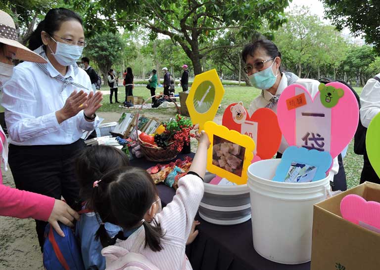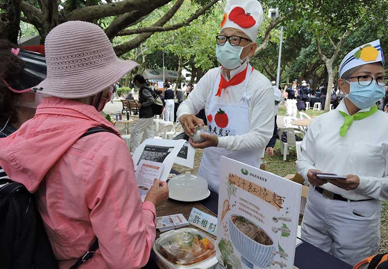 「大哉教育,食事為大」,慈濟倡導素食護生,環保、友善的飲食觀,因為茹素是對身體健康及地球環境的「健康」皆有所助益,且這是消弭疫情的良方妙藥,也是減緩地球暖化的方法之一。
