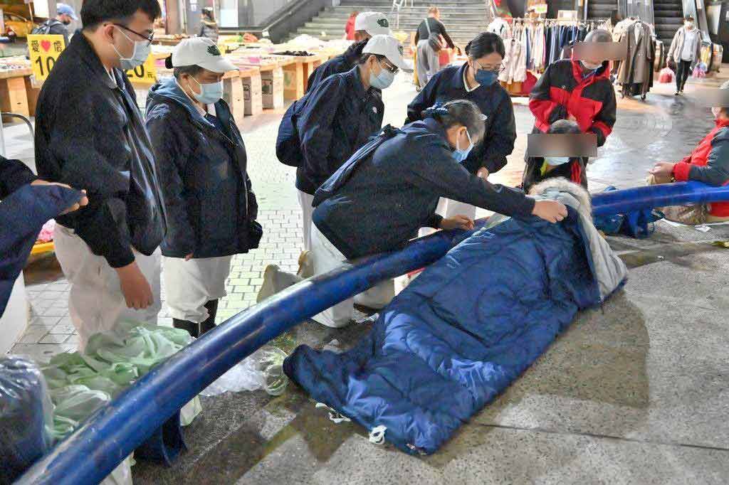 氣象報告,2022年12月17日,全臺溫度將低至十度以下,高山並有下雪的可能。16日晚間,志工帶著帽子、襪子、衛生衣、暖暖包、外套、圍巾、睡袋等禦寒物資,上街送溫暖。