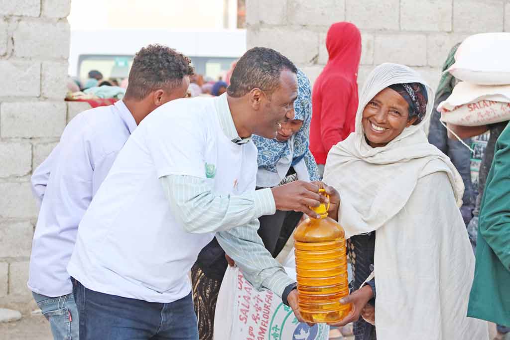 衣索比亞,被聯合國列為46個最低度開發國家之一,因乾旱、內戰衝突等原因,境內約有三千萬人需要援助,包含糧食與乾淨的水。慈濟與當地慈善組織積米亞協會(Kidmia Mahiber)合作,援助當地難民,包含:(一)雪瓦羅比特(Shewa Robit)及阿塔耶(Ataye)兩個小鎮,幫助因內戰而需生活重建的一千戶家庭,每戶一個月糧食。(二)援助岱柏柏罕鎮(Debre Birhan )的兩處難民營,營養糧食包,及1,158兒童班孩童一個月的點心與午餐。