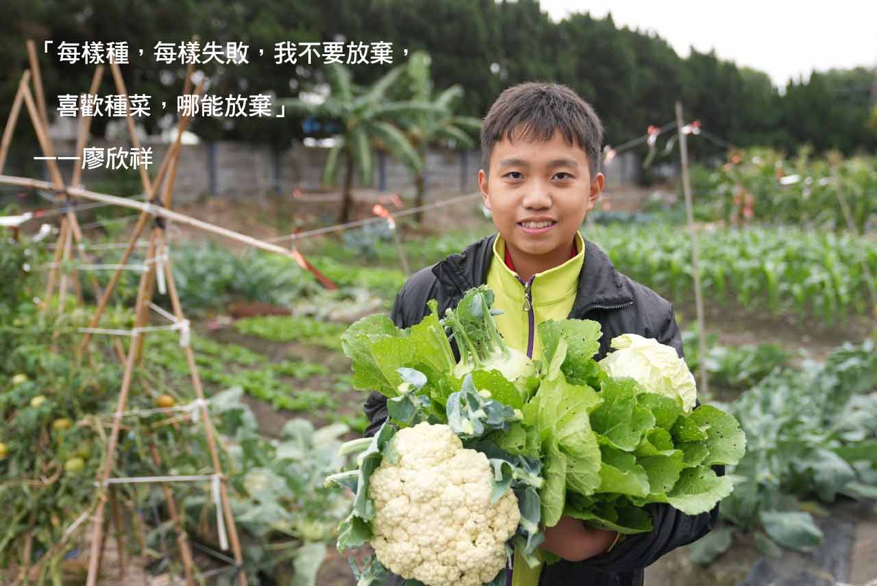 「剪蔥頭一個晚上,差不多有200 塊收入。很多人問我,為什麼要做這份工作?這筆收入可以幫助家裡!」16 歲少年欣祥如是說。「蔥仔寮」猶如小型家庭代工場,靠人力處理紅蔥頭、蒜苗和蔥,以臺斤計算工資,是鄉間 常見婦女和長輩賺外快的方式。即使常被蔥、蒜嗆到掉淚,欣祥還是願意躋身其中,補貼家用。 四代同堂,有三個老人、四個小孩、一個病人,一家十口全靠欣祥的父母打零工勉強餬口。 阿嬤一天煮六餐,夜晚看顧90 歲阿祖,體力大不如前。身患癲癇的欣祥,深怕阿嬤累倒,13 歲開始打工,想方設法節省買菜錢。欣祥認養一塊地,從國中就一頭栽進菜園,不怕失敗,改 良技術,高麗菜、花椰菜、結頭菜⋯收成豐碩,省下一大筆伙食費,還把菜分享給同村獨居阿 公阿嬤。新冠疫情爆發時,他們成為村子第一戶確診者,全家隔離21 天沒有收入。慈濟急難救助金讓一家人度過難關,並提供助學補助,鼓勵孩子們不放棄學業。欣祥考上第一志願虎尾農工農 技科,優異的種菜技術屢獲肯定,代表學校參賽獲獎無數。 就像他親手播下的種子,雖然微小,經過長年細雨滋潤,終於突破硬土,長出新芽。