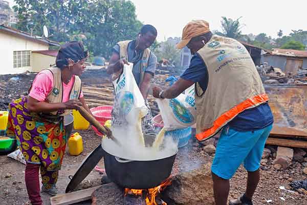 一場不知名的大火吞沒了整個格洛斯特鎮(Gloucester),大火奪走了36 戶人家的財產。長期與慈濟合作的自由城明愛會(Caritas Freetown) 展開救援行動,連續二週在災區設立熱食供應點,同時進行物資發放幫助災民度過難關。志工準備了大米、雜糧、嬰兒食品、牛奶等食物,並備有毛毯、牙刷、牙膏、沐浴皂、洗衣皂、毛巾等日用品,更貼心地為女性採買衛生棉、內衣等專用物品,就是希望他們能安住身心。
