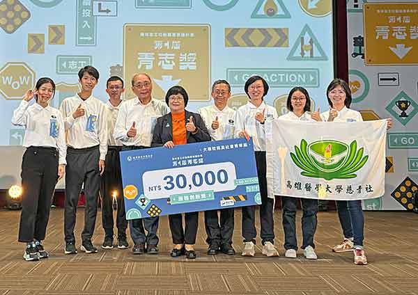 教育部青年發展署鼓勵青年朋友投入 志願服務,多年來推動志工團隊競賽,表 揚績優青年志工團隊與運用單位。高雄醫 學大學慈青社組成的高雄青年醫療志工, 以主題「您的牙齒,我來守護」參加第一 屆青志獎,衛教及義診的實際行動,獲頒 「服務創新獎」。
