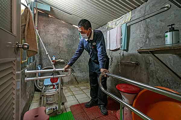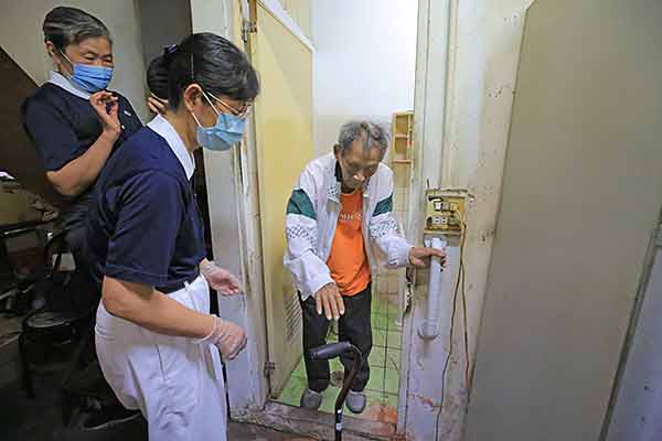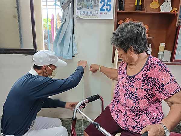 陪伴年邁又行動不便的長者,試用安裝 完成的扶手,使用是否順暢?
