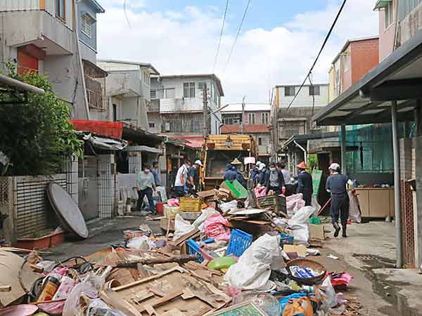 經過鄉公所的轉介,慈濟、村長和日照中心,共同討論了盧伯伯的照護需求,並組成了一個 46 人的團隊前往協助。居家打掃這一天,清理出來的物品幾乎塞滿整條街道,甚至還有塵封21 年的物品。