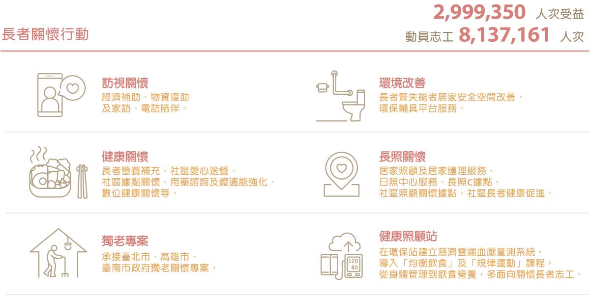 照顧社區長者健康,針對獨居長者,慈濟啟動「銀養顧健康」專案,同時推動數位健康關懷。